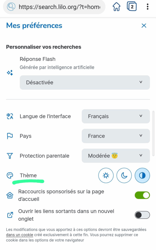 - Ouvrez vos préférence sur search.lilo.org