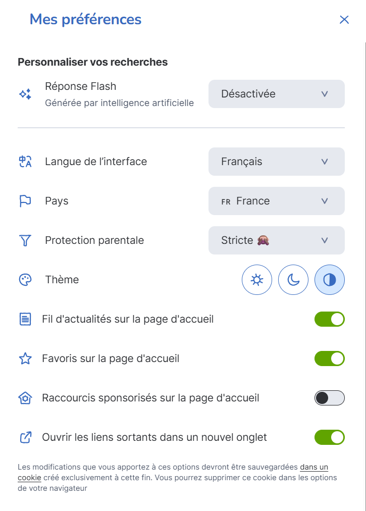 Vous pouvez choisir d’afficher ou non les favoris sponsorisés dans vos résultats de recherche Lilo.